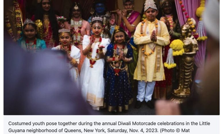 NEW YORK, NEW YORK, November 10, 2023 (RNS, by Richa Karmarkar): As this year’s Diwali Motorcade passed through the heart of Ozone Park, Queens, last weekend, Lakshmee Singh explained how the parade, which her mother helped launch more than 30 years ago, is at once her inheritance and the future of her largely Hindu immigrant community. “We were around when there was nothing, and we helped build this religious community,” said Singh, standing at the corner of Lefferts Boulevard and Liberty Avenue, a crossroads of the neighborhood known as Little Guyana for its dense population of families who trace their history to the Caribbean nation on the shoulder of South America. “It’s just pride to say you could leave your motherland and still come to America and hold onto your religion and culture, and be proud of it, not hide it,” said Singh, the host of a local Indo-Caribbean talk show that airs in both Queens and Guyana.