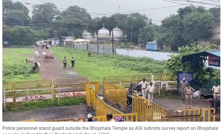 BHOPAL, INDIA, July 15, 2024 (Indian Express): The Archeological Survey of India (ASI) Monday submitted its survey report on the disputed Bhojshala temple-cum-Kamal Maula mosque complex in Dhar district to the Madhya Pradesh High Court, stating that the scientific investigation reveals that the “existing structure was made from the parts of earlier temples.” The court had in March last year ordered the ASI to conduct the survey, observing that the nature and character of the structure needs to be “demystified and freed from the shackles of confusion.” Hindus regard the ASI-protected complex as a temple dedicated to Goddess Vagdevi (Saraswati), while Muslims consider it the site of the Kamal Maula mosque. Under an arrangement made in 2003, Hindus perform puja at the complex on Tuesdays while Muslims offer namaz on Fridays.