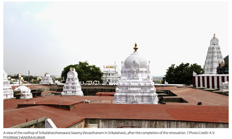 INDIA, April 19, 2025 (The Hindu): Renovation of ancient structures using modern technology and materials without denting their aesthetics and historical value has always been a challenge. And when the structure is a temple as old as the Srikalahastheeswara Swamy Devasthanam in Srikalahasti town of Tirupati district, there is no room for error. The temple had been facing leaks at several spots on its roof for a long time, despite the application of concrete over the years. However, the temple management’s latest efforts, which blend age-old practices with modern technology, promise a lasting solution that also keeps the temple’s authentic beauty intact. The temple structure has a massive common roof spread over 64,000 sq.ft., covering the sanctum sanctorum of Sri Swamivaru as well as Ammavaru, besides the other celestial beings (Parivara Devathalu). An ancient roof of brick and surkhi (burnt clay) mortar is kept aloft by stone slabs. When it rained, water seeped into the temple through pillar joints and gaps in the roof stones. The issue was addressed for the first time in 2009, when a chemical coating was applied to arrest the leakages, but in vain.