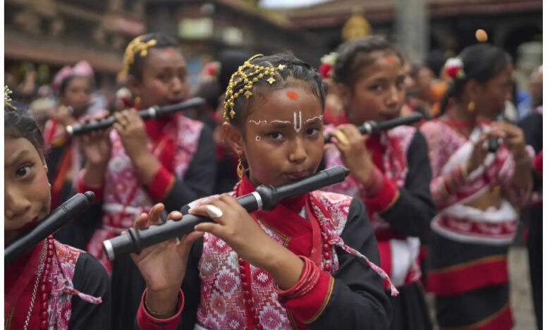 INDIA/NEPAL, August 16, 2025 (AP News): This is a slide show of marvelous pictures of the celebration of the birth of Lord Krishna on Krishna Janmashtami. There are photos of devotees playing flutes (above) and with lit oil lamps on their hands, head, and shoulders during a parade celebrating the birth in Bhaktapor, Nepal. Other’s of devotees in India playing traditional instruments, lighting incense and forming human pyramids in this vivid photo gallery of the festive celebrations. Great to watch!
