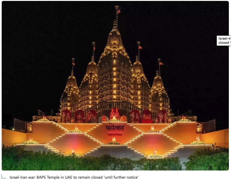 ABU DHABI, March 9, 2026 (Tribune India): The Bochasanwasi Akshar Purushottam Swaminarayan Sanstha (BAPS) Temple in Abu Dhabi said it will remain closed until further notice, as the Iran-Israel conflict has escalated into a major direct war involving the United States. On March 2, the temple said that the priests there continued to pray for the safety of the people. It said, “As the BAPS Hindu Mandir in Abu Dhabi remains temporarily closed to visitors, the Swamis continue to offer special prayers within the sacred sanctums of the Mandir. In these deeply spiritual moments, their devotion carries prayers for peace, protection, and the well-being of all.” As the government and authorities work tirelessly to safeguard our nation, we humbly urge everyone to remain calm, avoid rumors, stay indoors, engage in personal prayers and strictly follow the safety guidance shared through official channels. Let us stay united in faith, responsibility and trust,” it added.