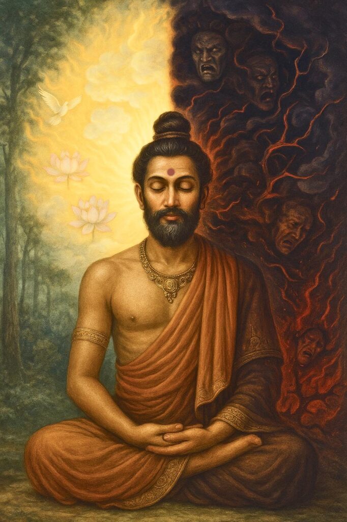 Take heaven, for instance—called svarga in Sanskrit. It’s not just a distant celestial realm. It’s a state of elevated awareness, of joy and clarity, that we can access in this very moment. The same goes for hell—naraka. It’s not simply a fiery underworld. It’s a reflection of our own inner turmoil. If someone dies while trapped in fear, hatred or confusion, their soul is drawn to a realm that mirrors that inner state. If they die in peace and love, they rise to a realm that reflects that peace.