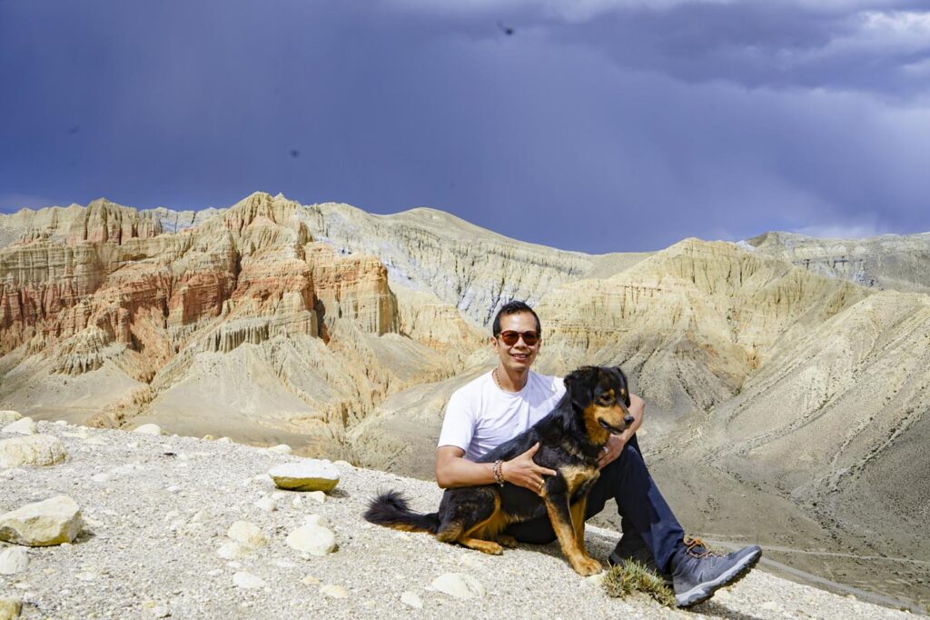 From Kagbeni, we embarked on a strenuous three-day trek on foot to Lo Manthang, the ancient walled capital of Mustang. Almost immediately, a striking black dog with a thick, shiny coat appeared, trotting alongside us with quiet authority. My guide told me she was a Tibetan Mastiff, one of the most prized and expensive breeds in the world. I named her Bhairavi, after the fierce sixth Mahavidya Goddess, who transcends space and time. She seemed to know the trails instinctively, occasionally sprinting ahead to chase foxes before looping back to check on us.