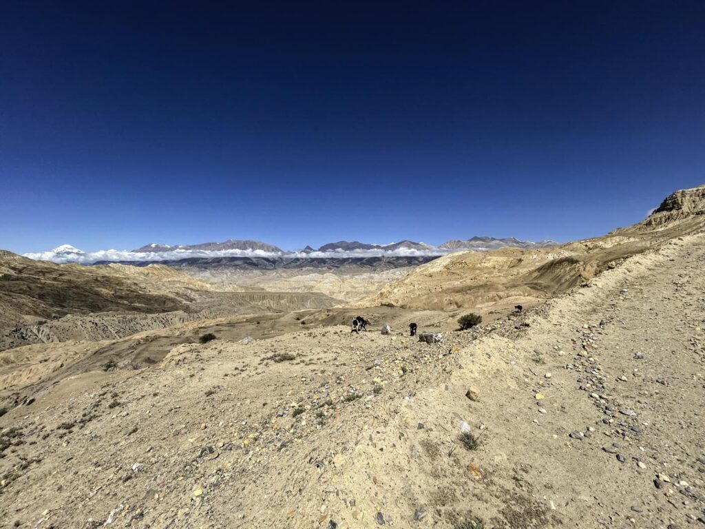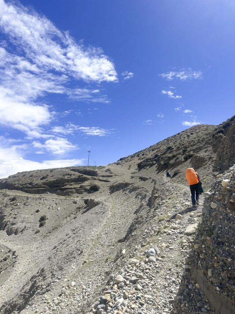 After lunch at a local inn, we climbed our first mountain pass. The trek was challenging: the altitude began to press on our lungs, the sun scorched our backs, and the dry wind parched our throats. Bhairavi, seemingly impervious, darted down steep slopes and back, leading us through the rocky terrain with agility and confidence.