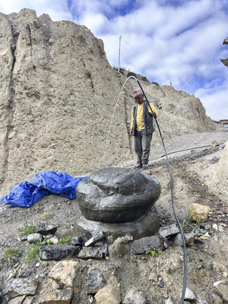 My own journey here, from June 30 to July 14, 2025, was first and foremost a pilgrimage, with research coming only secondarily. Walking its banks, speaking with local priests, and tracing the river’s course to the upper reaches where the ammonites are said to originate, I sought to understand how geography, geology and devotion converge in the making of these sacred icons. Discovering the origins of the Shalagramas brought new depth to my understanding of Mustang as a sacred landscape, where rivers and rocks are not merely natural formations, but also vessels of divine presence.