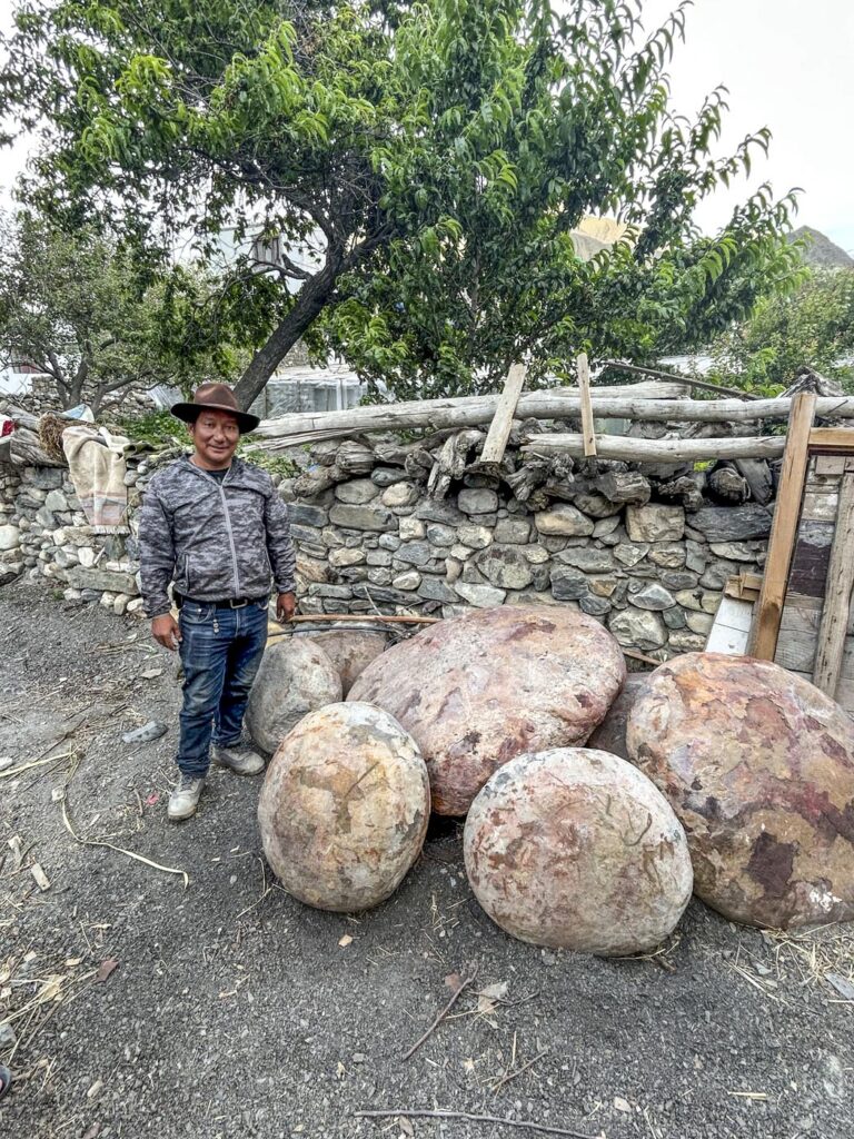 Chandan explained how he acquired them: local Tibetan villagers, who often see these stones less as sacred objects than as commodities, scour the riverbeds and sell them to him. As a well-known hotelier, he is the first point of contact for both villagers and Indian dealers. Over years of trade, he has developed a keen eye for which forms and markings are most prized by collectors in Kathmandu and India. At times, dealers arrive with trucks, buying up everything they can, but Chandan prefers to sell carefully, knowing which stones command the highest value. For him and the villagers alike, Shalagramas are as much a livelihood as they are sacred symbols.
